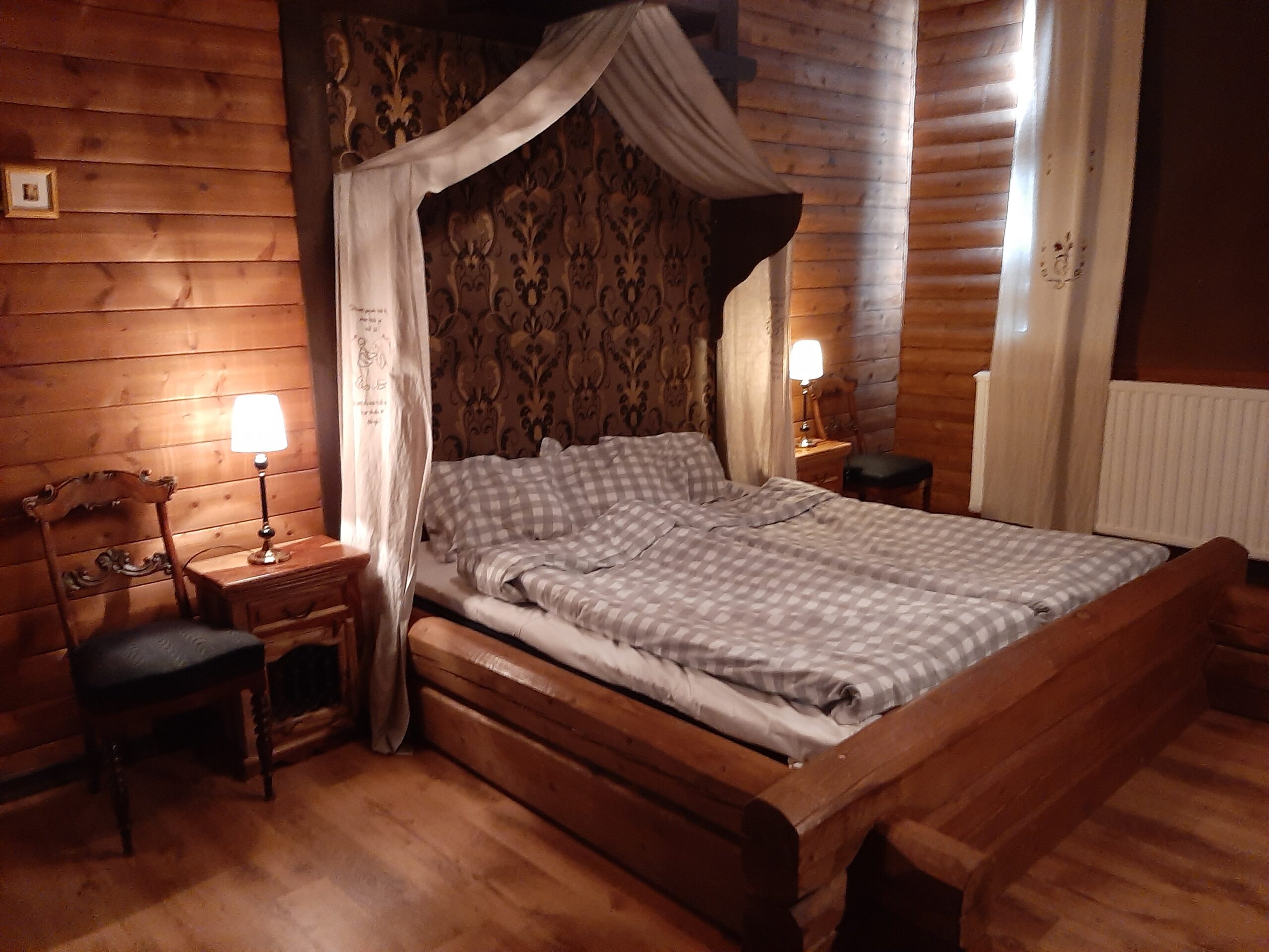 Vårt finaste och charmigaste rum med himmelssäng i trä och handbroderade överkast. Badrummet är helkaklat med bubbelbadkar. Mysig skinnsoffa och LCD-TV. Minibar, trådlöst internet.